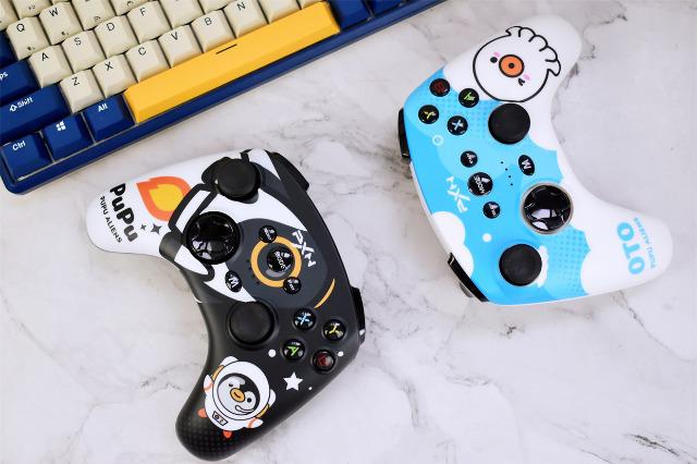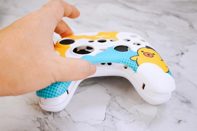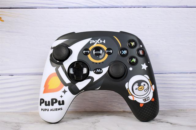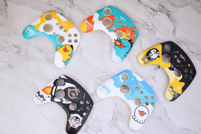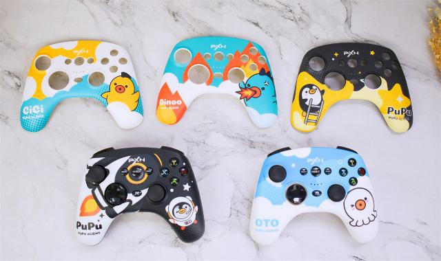萊仕達PXN-P20游戲手柄的最大的亮點就在于它多彩的外殼可以隨心替換,由于手柄是和騰訊PUPU聯名款,提供了多大5款PUPU星人個性化面蓋,1.DINDOO孔雀綠;2.PUPU星空黑;3.CICI嫩芽黃;4.OTO湖水藍;5.PUPU太空白,一套湊齊的感覺還是很爽的。