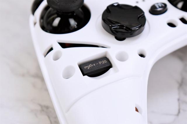 手柄的接收器就藏在面板下方左側的握把處,這個設計既美觀又解決了接收器的收納問題,不用擔心丟了,很人性化的設計。