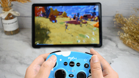 先體驗下在大屏電視上玩游戲,連接方式很簡單,關機狀態下長按 mode+X鍵三秒,等待下方的3led燈閃爍,然后在安卓設備上搜索PXN-P20A的藍牙,點擊便可以完成連接。